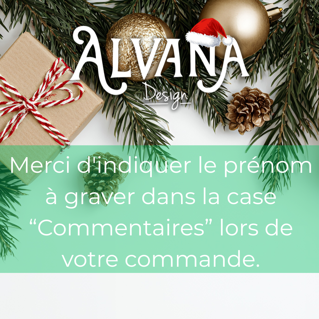 Merci d’indiquer le prénom à graver dans la case “Commentaires” lors de la validation de votre commande.