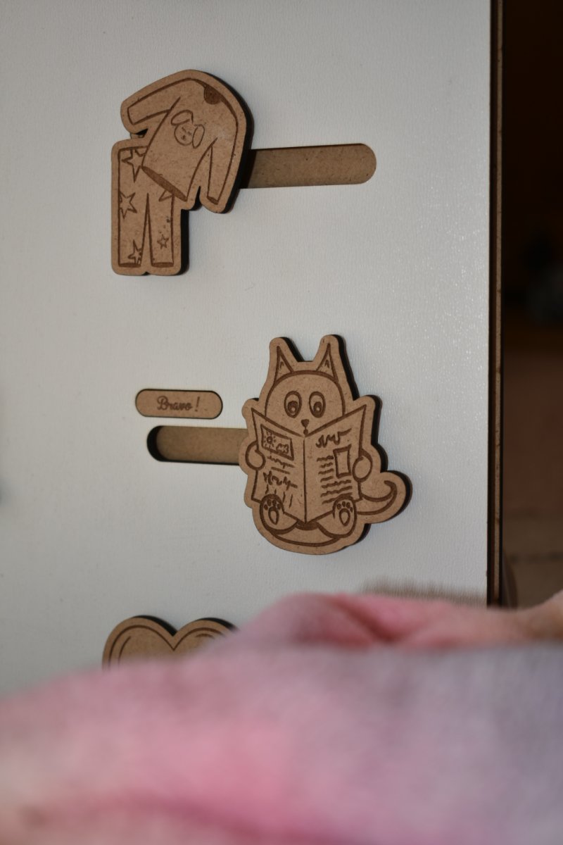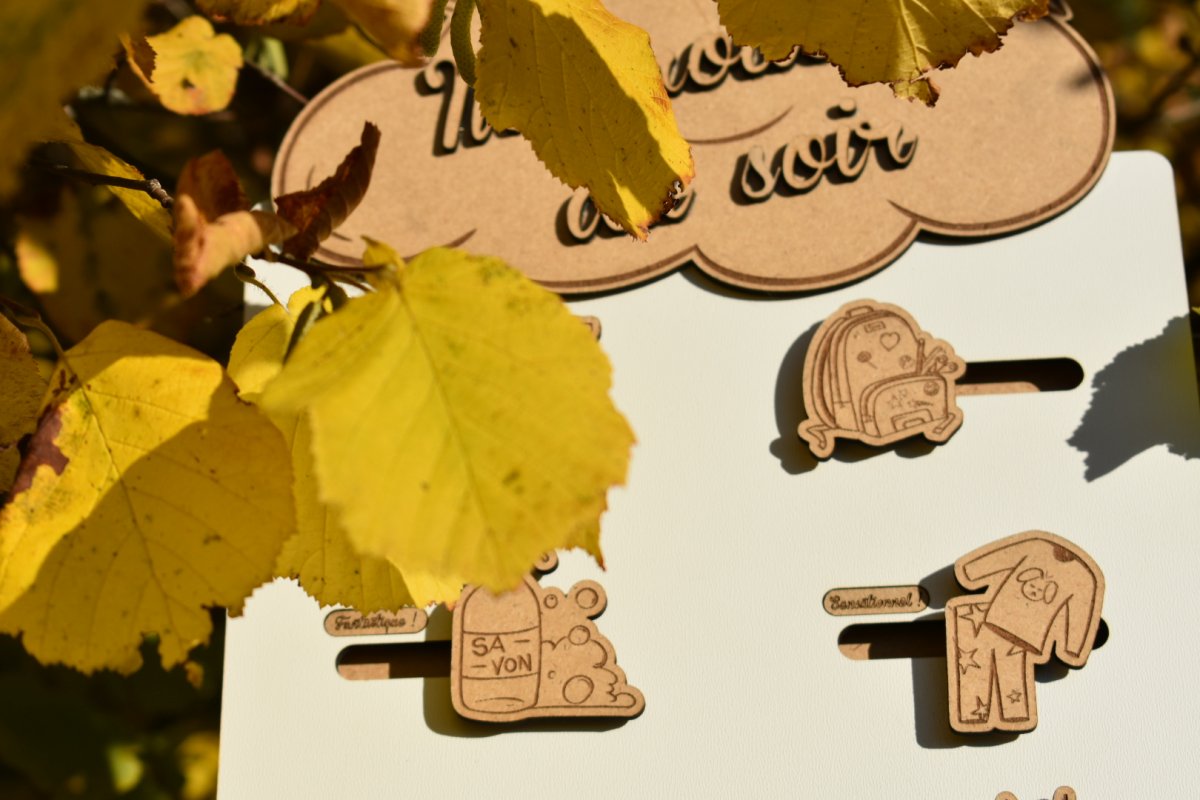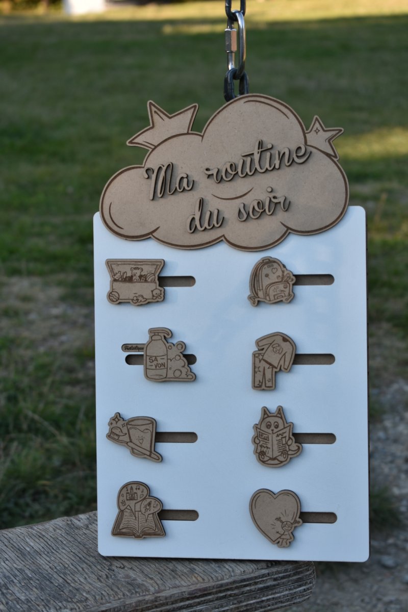 Une routine du soir en bois gravé, idéale pour accompagner les enfants dans leur quotidien tout en douceur.