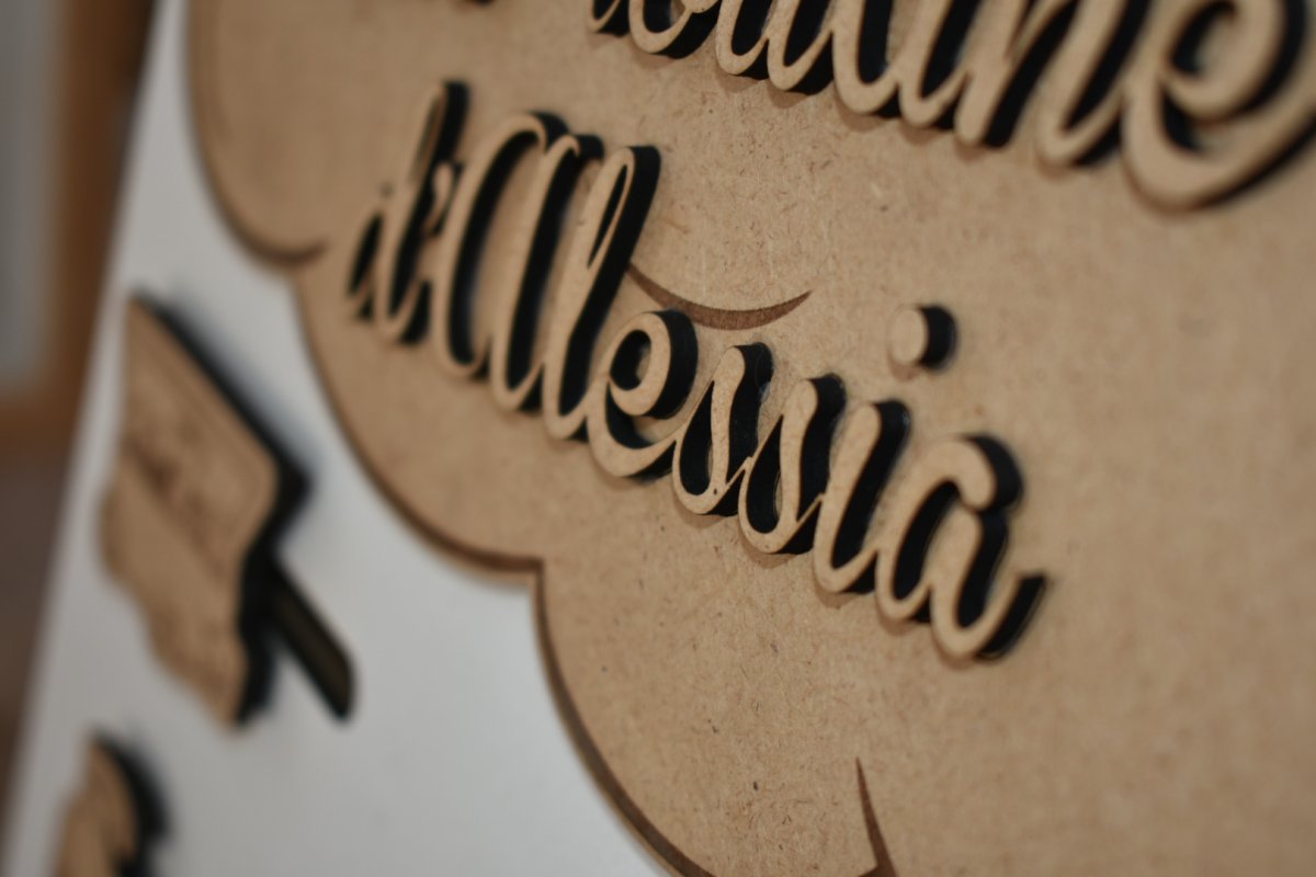 Fabrication artisanale en Valais — bois découpé et gravé au laser dans notre atelier.